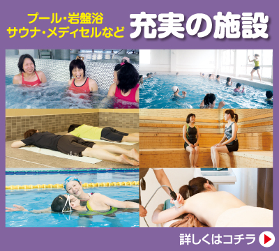 3つのこだわりプールを中心に、岩盤浴、サウナ、